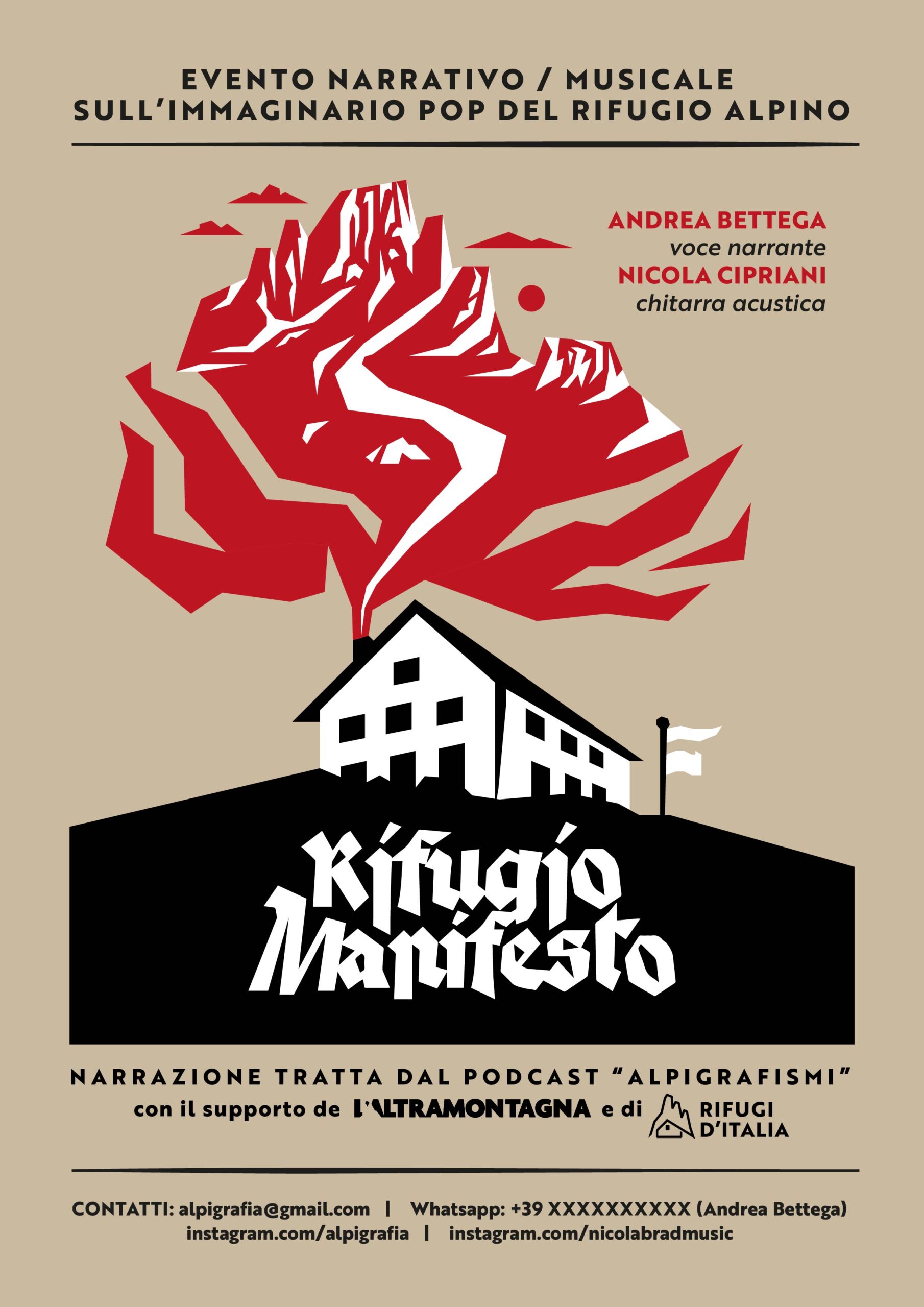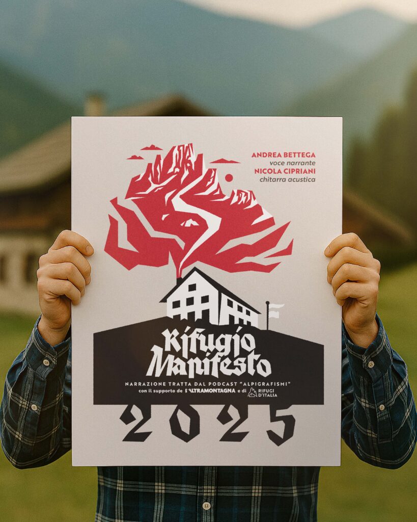 For those who frequent the mountain lands, the alpine hut is undoubtedly a comfort zone for the soul. It can represent a destination or a starting point, certainly a safe place necessary to mark the times of an excursion and a support you can count on. “Rifugio Manifesto” is a monologue set to music by an acoustic guitar, which brings the history and pop imagery of alpine huts to the mountain places. This live show is taken from the podcast “Alpigrafismi”, and is curated by Andrea Bettega with music by Nicola Cipriani and Brad Myrick.
